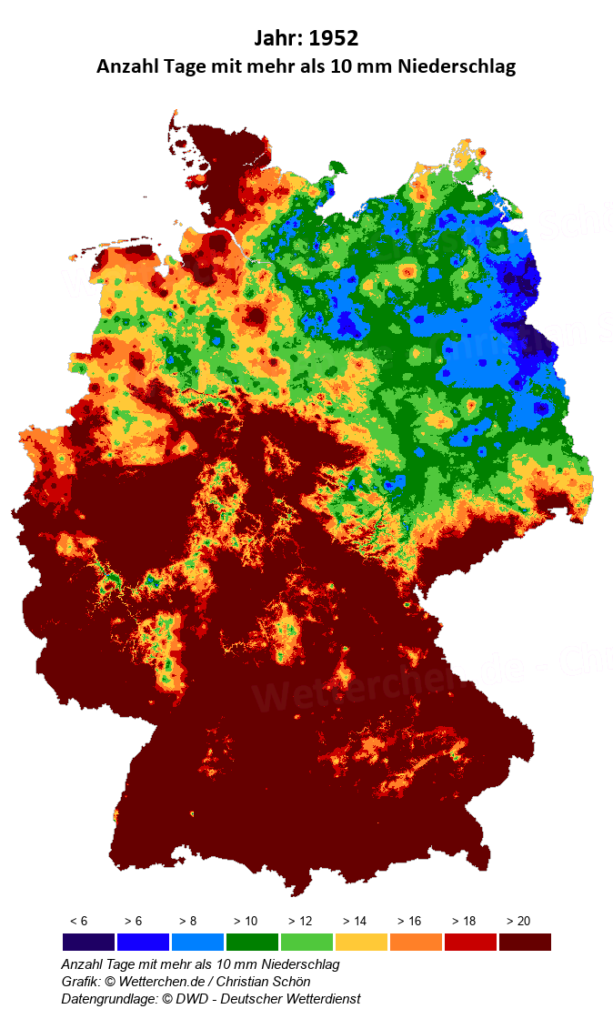1952 - Anzahl Tage mit mehr als 10 mm Niederschlag