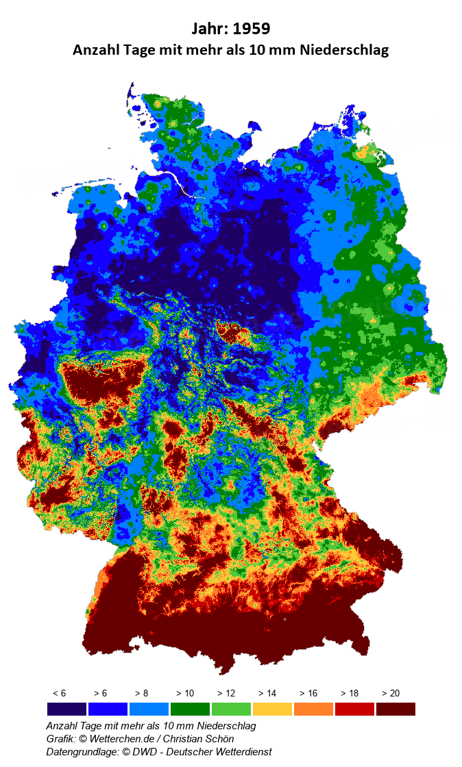 1959 - Anzahl Tage mit mehr als 10 mm Niederschlag