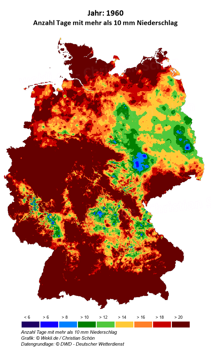 1960 - Anzahl Tage mit mehr als 10 mm Niederschlag