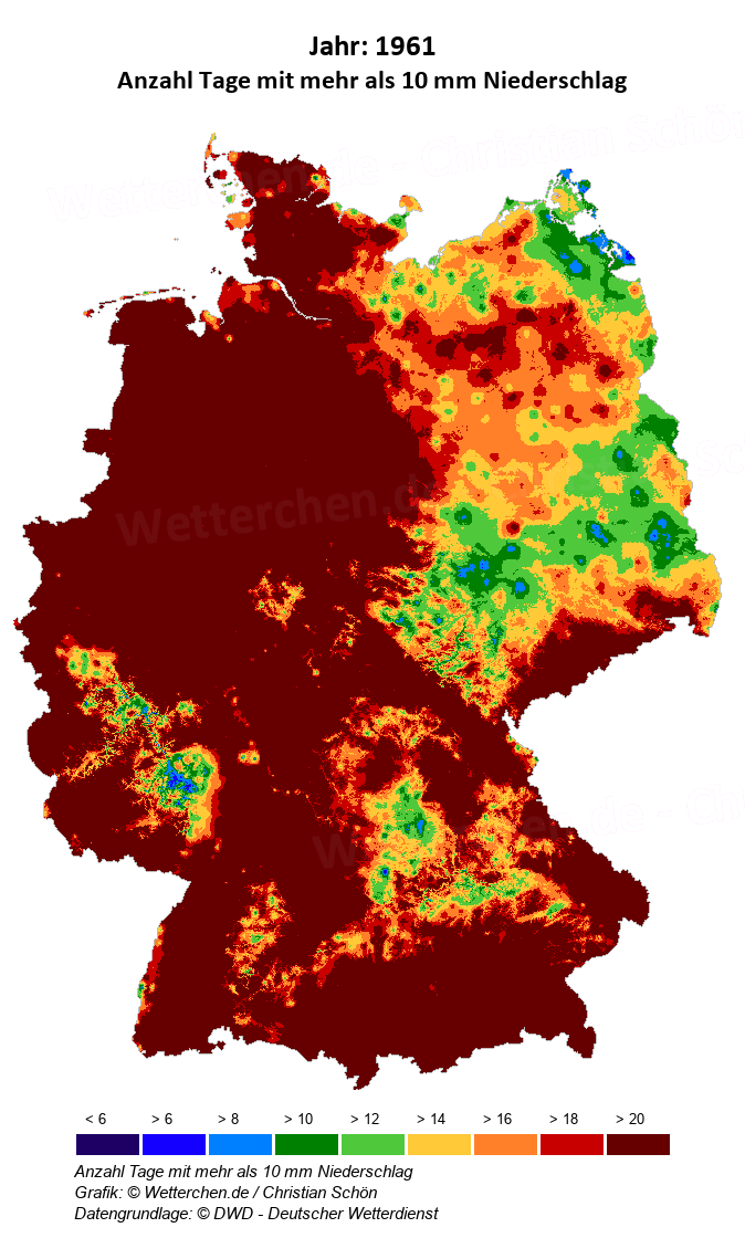 1961 - Anzahl Tage mit mehr als 10 mm Niederschlag