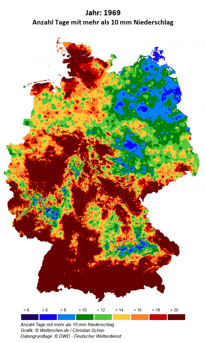 1969 - Anzahl Tage mit mehr als 10 mm Niederschlag