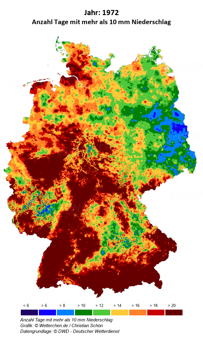 1972 - Anzahl Tage mit mehr als 10 mm Niederschlag