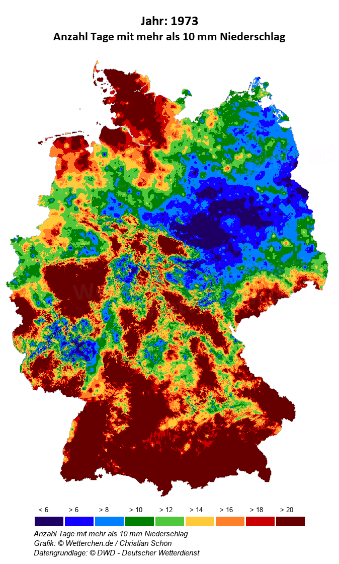1973 - Anzahl Tage mit mehr als 10 mm Niederschlag
