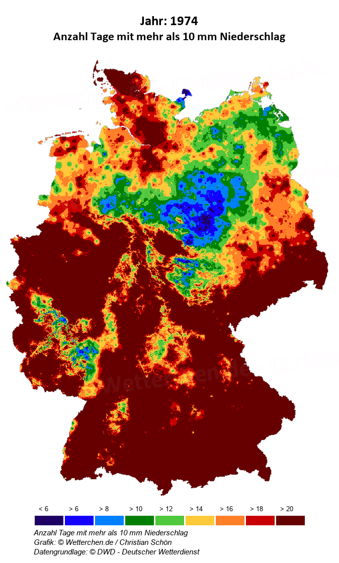 1974 - Anzahl Tage mit mehr als 10 mm Niederschlag