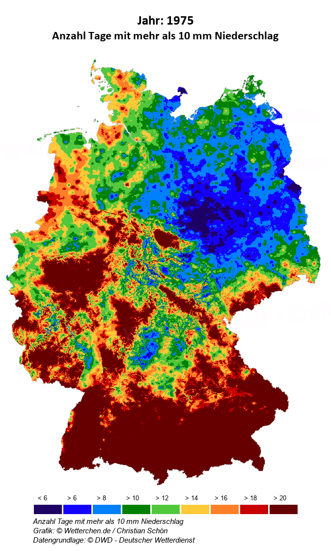 1975 - Anzahl Tage mit mehr als 10 mm Niederschlag