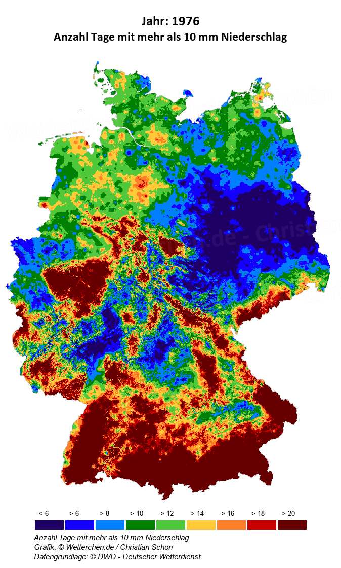 1976 - Anzahl Tage mit mehr als 10 mm Niederschlag