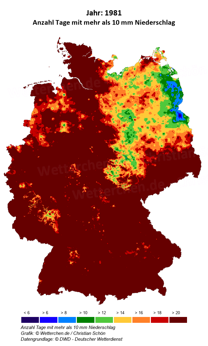 1981 - Anzahl Tage mit mehr als 10 mm Niederschlag
