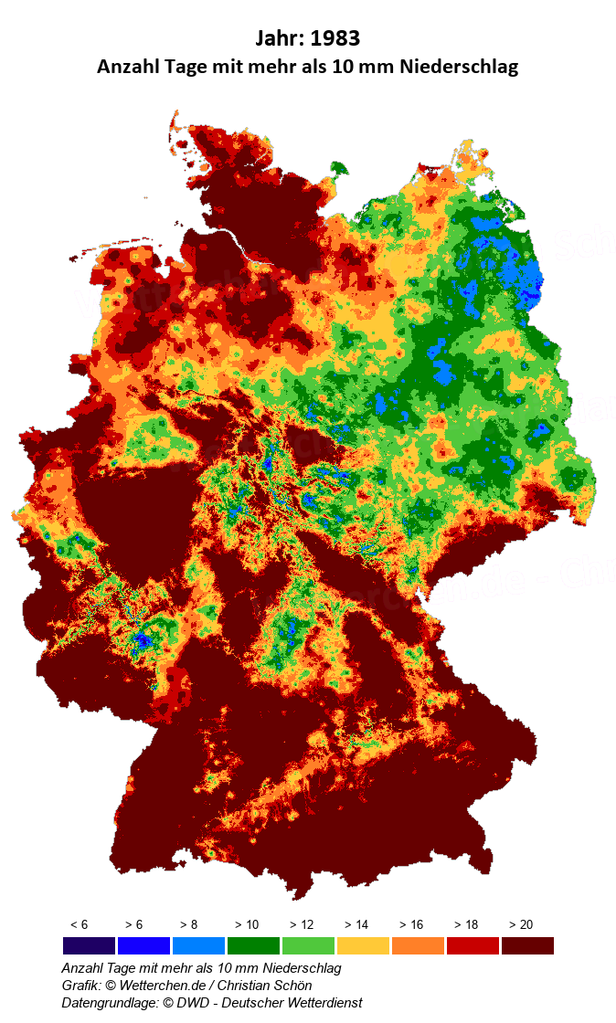 1983 - Anzahl Tage mit mehr als 10 mm Niederschlag