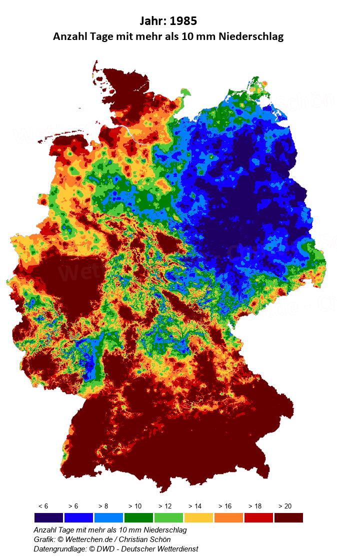 1985 - Anzahl Tage mit mehr als 10 mm Niederschlag
