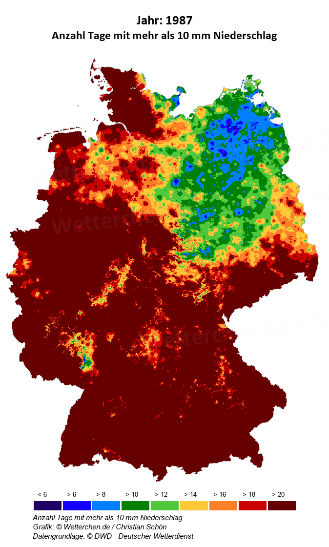 1987 - Anzahl Tage mit mehr als 10 mm Niederschlag