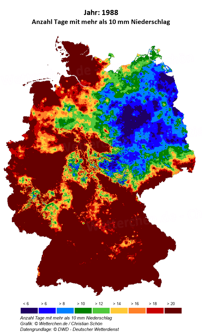 1988 - Anzahl Tage mit mehr als 10 mm Niederschlag