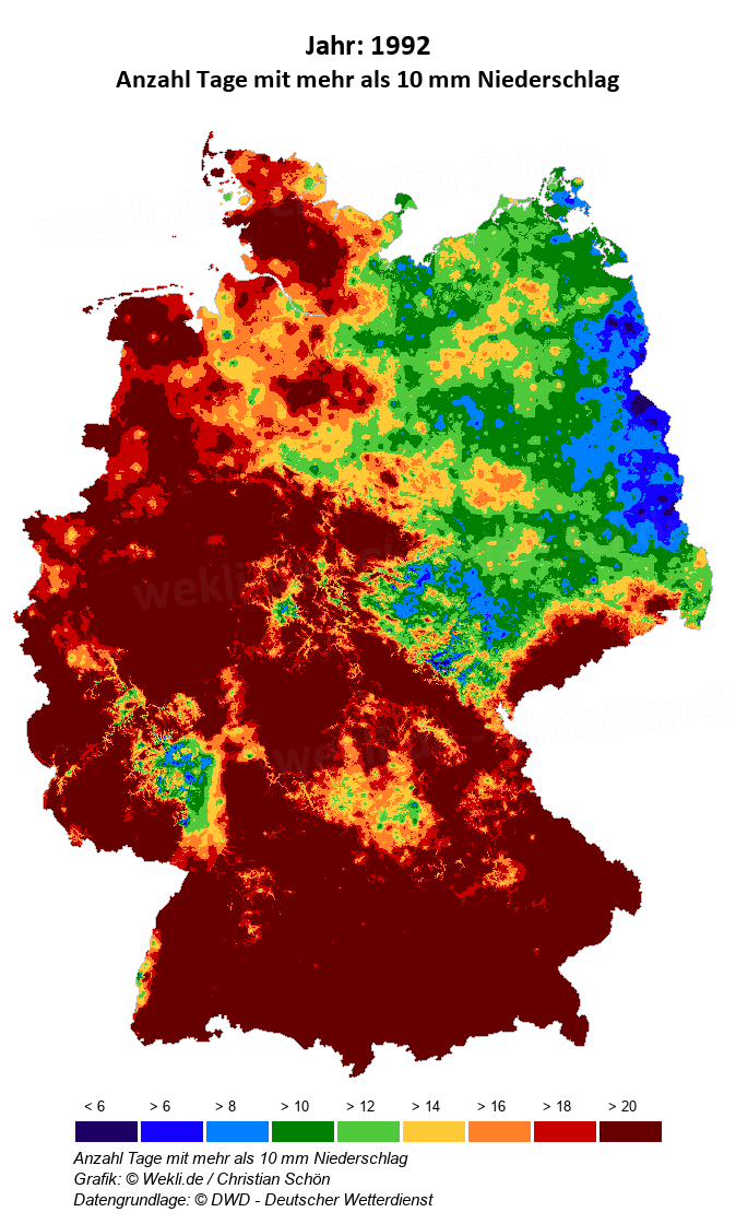 1992 - Anzahl Tage mit mehr als 10 mm Niederschlag