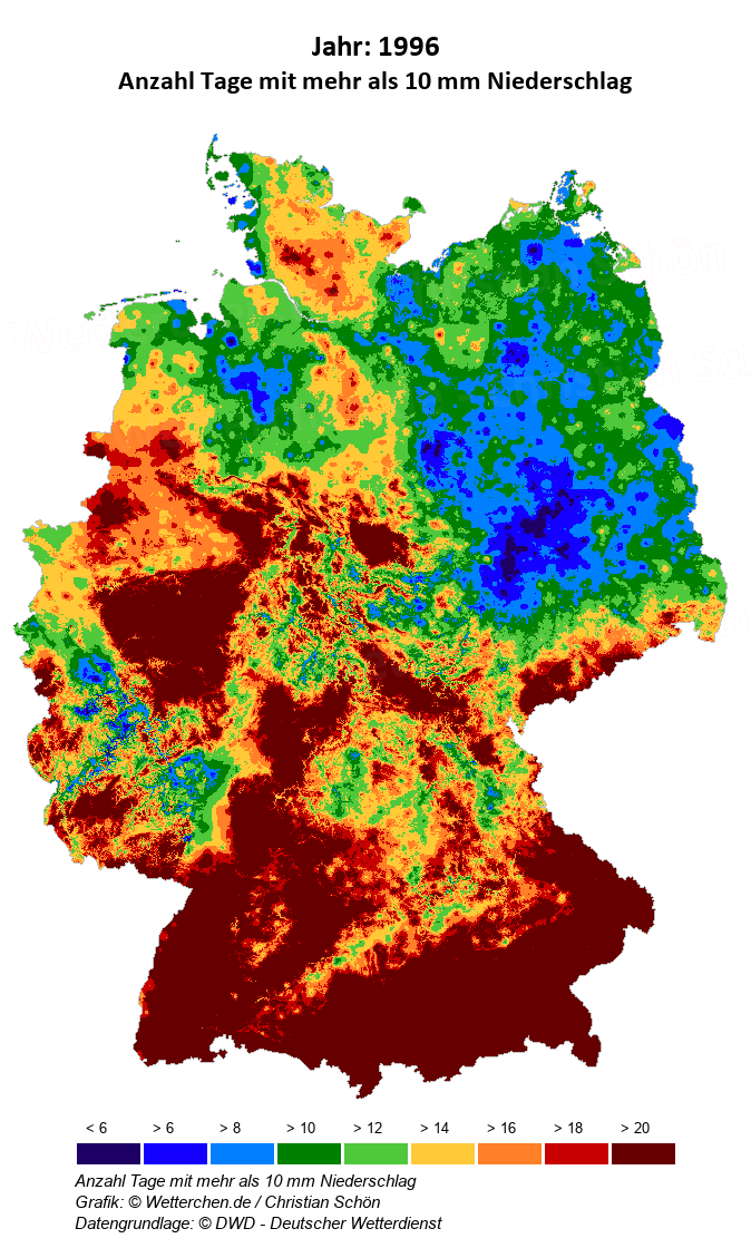 1996 - Anzahl Tage mit mehr als 10 mm Niederschlag