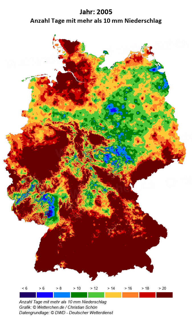 2005 - Anzahl Tage mit mehr als 10 mm Niederschlag