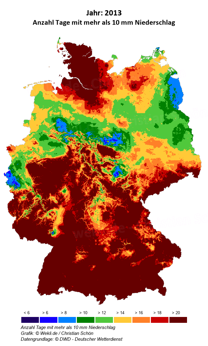 2013 - Anzahl Tage mit mehr als 10 mm Niederschlag