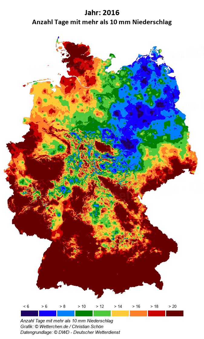 2016 - Anzahl Tage mit mehr als 10 mm Niederschlag
