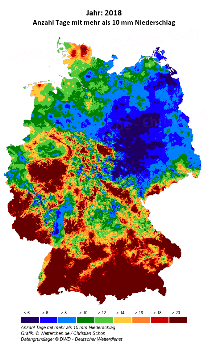 2018 - Anzahl Tage mit mehr als 10 mm Niederschlag