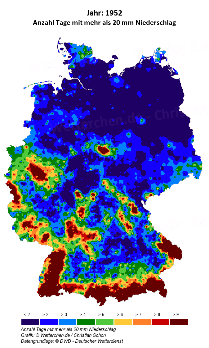 1952 - Anzahl Tage mit mehr als 20 mm Niederschlag