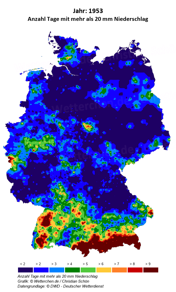 1953 - Anzahl Tage mit mehr als 20 mm Niederschlag