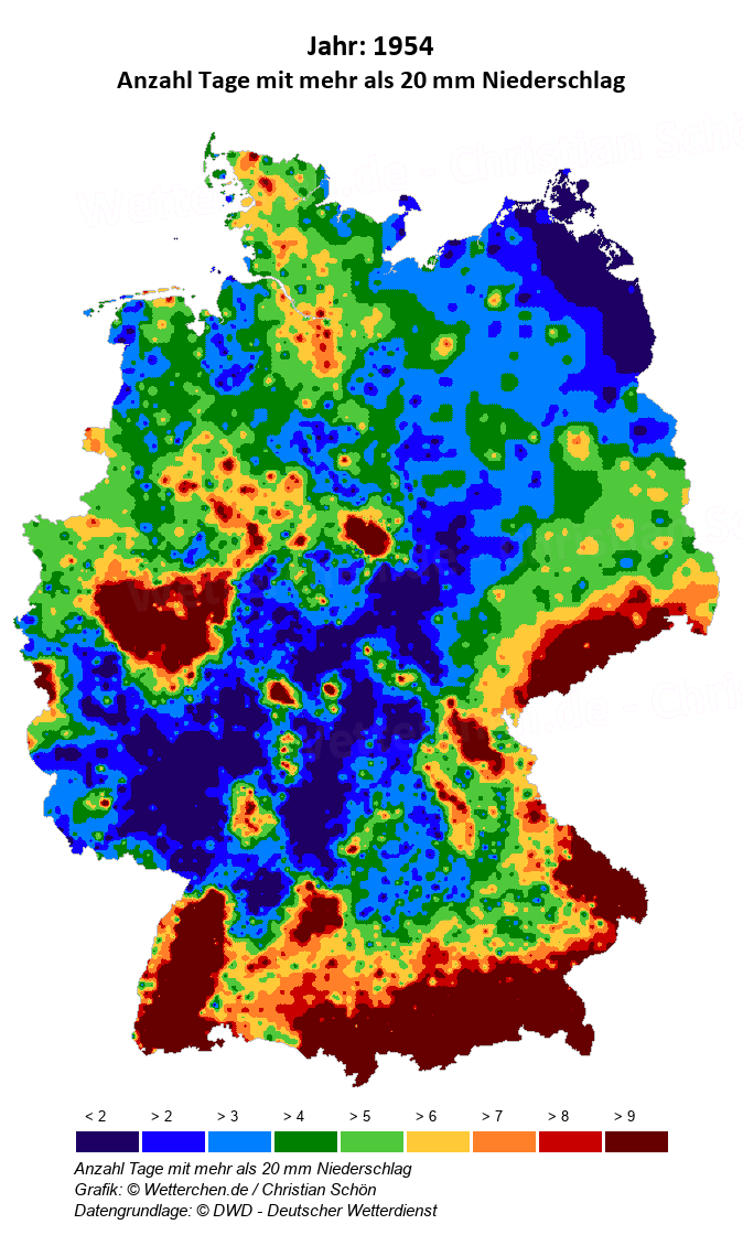 1954 - Anzahl Tage mit mehr als 20 mm Niederschlag