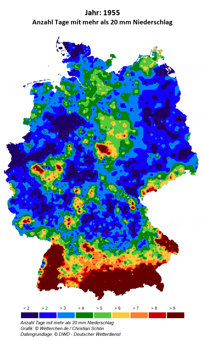 1955 - Anzahl Tage mit mehr als 20 mm Niederschlag