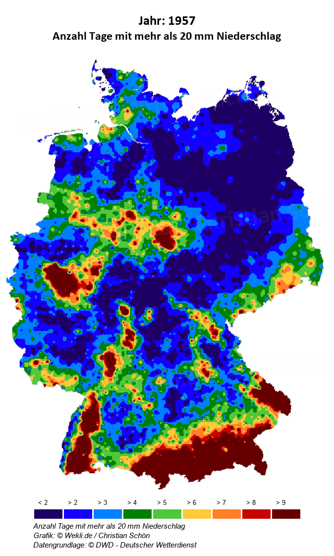 1957 - Anzahl Tage mit mehr als 20 mm Niederschlag