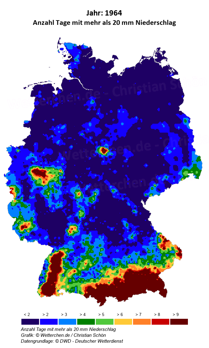 1964 - Anzahl Tage mit mehr als 20 mm Niederschlag