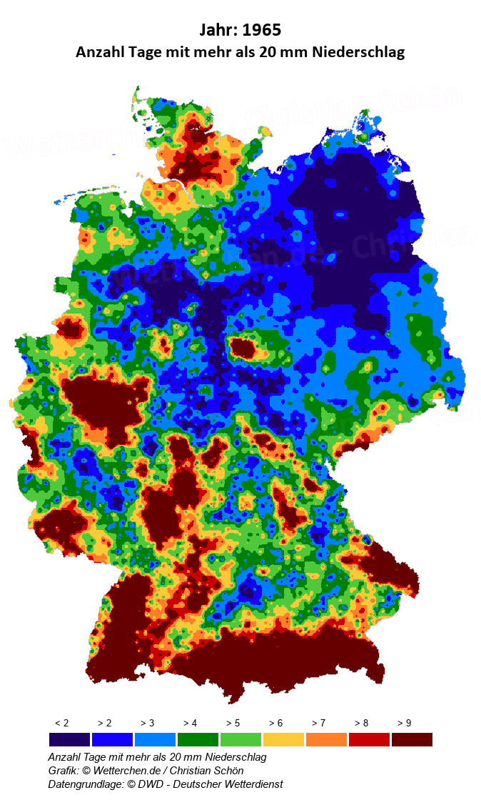 1965 - Anzahl Tage mit mehr als 20 mm Niederschlag