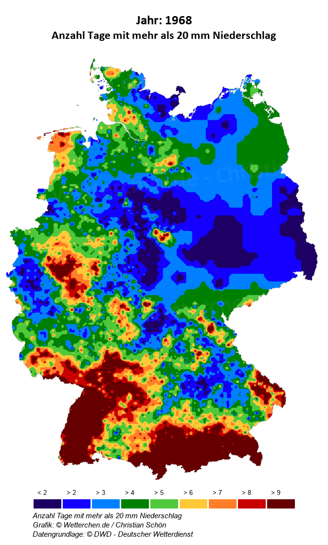 1968 - Anzahl Tage mit mehr als 20 mm Niederschlag