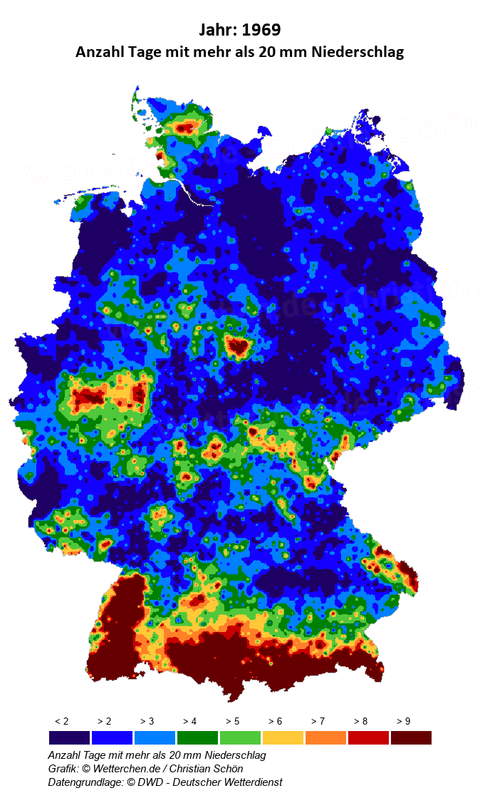 1969 - Anzahl Tage mit mehr als 20 mm Niederschlag