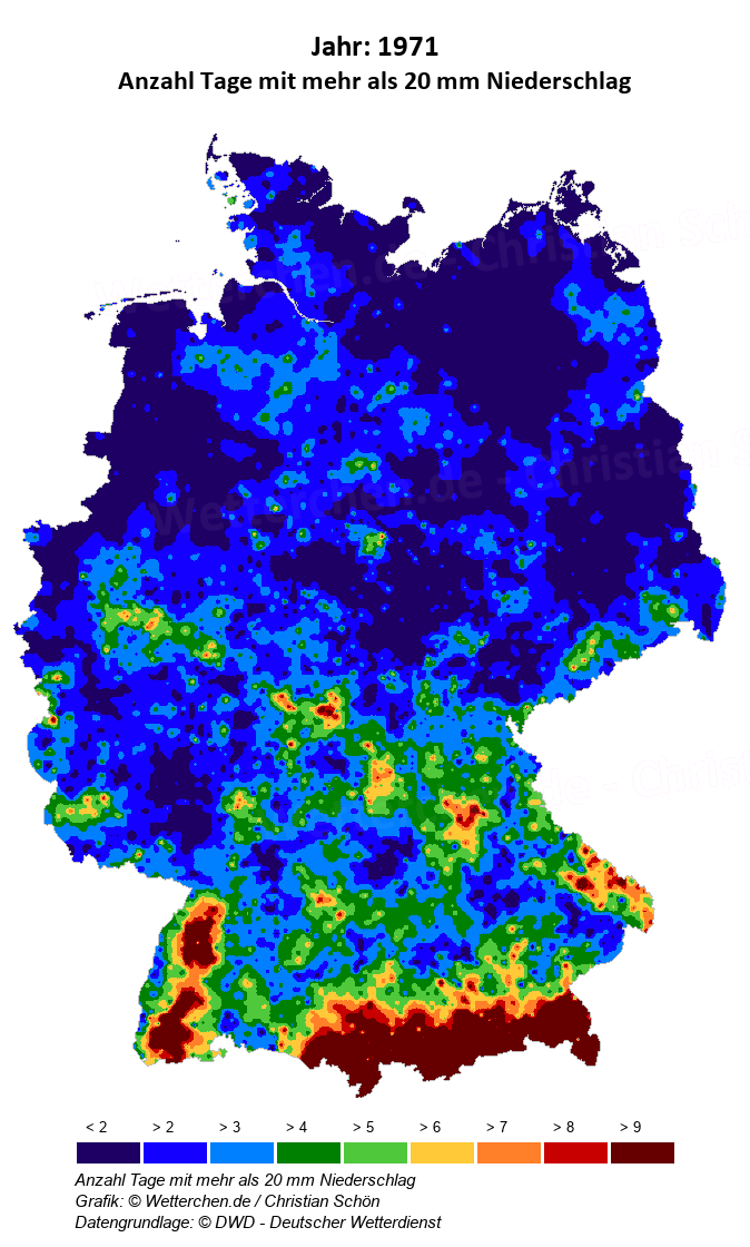 1971 - Anzahl Tage mit mehr als 20 mm Niederschlag