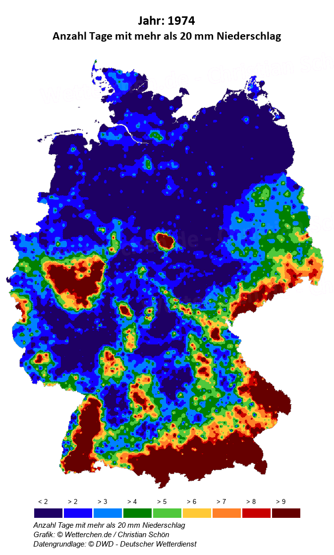 1974 - Anzahl Tage mit mehr als 20 mm Niederschlag