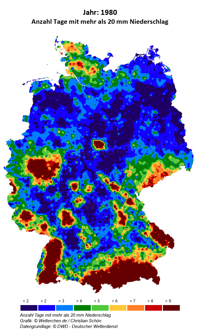 1980 - Anzahl Tage mit mehr als 20 mm Niederschlag