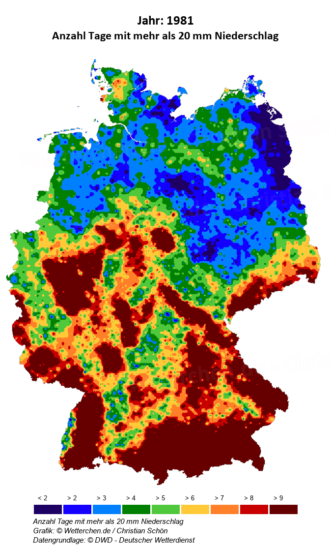 1981 - Anzahl Tage mit mehr als 20 mm Niederschlag
