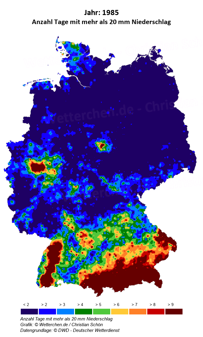 1985 - Anzahl Tage mit mehr als 20 mm Niederschlag