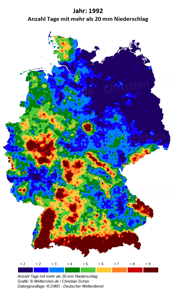 1992 - Anzahl Tage mit mehr als 20 mm Niederschlag