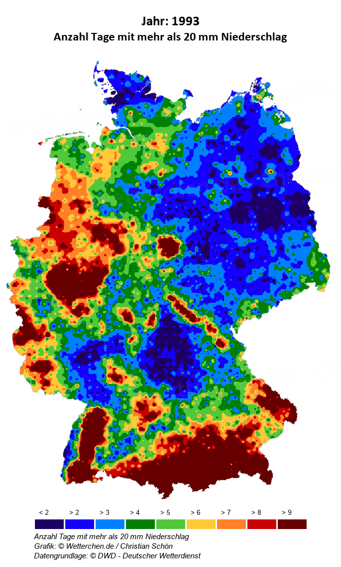 1993 - Anzahl Tage mit mehr als 20 mm Niederschlag