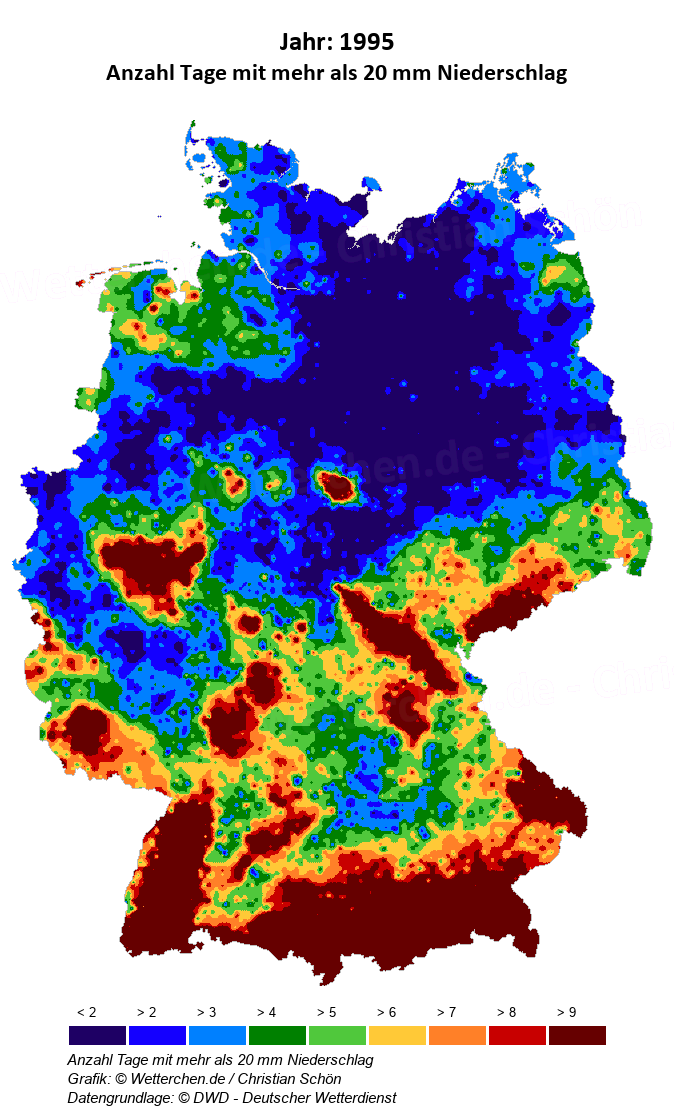1995 - Anzahl Tage mit mehr als 20 mm Niederschlag