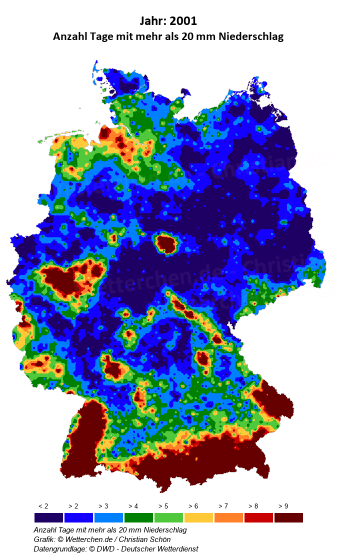 2001 - Anzahl Tage mit mehr als 20 mm Niederschlag