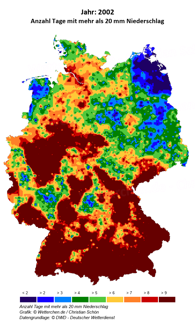 2002 - Anzahl Tage mit mehr als 20 mm Niederschlag