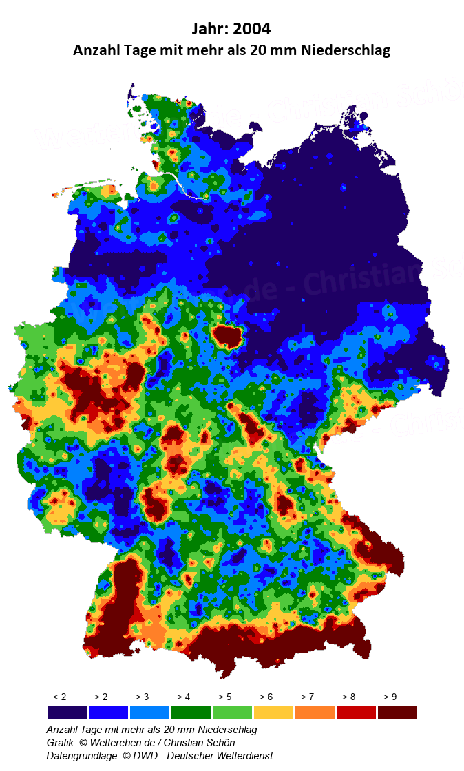 2004 - Anzahl Tage mit mehr als 20 mm Niederschlag