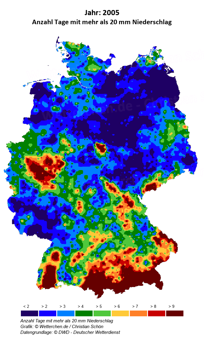 2005 - Anzahl Tage mit mehr als 20 mm Niederschlag