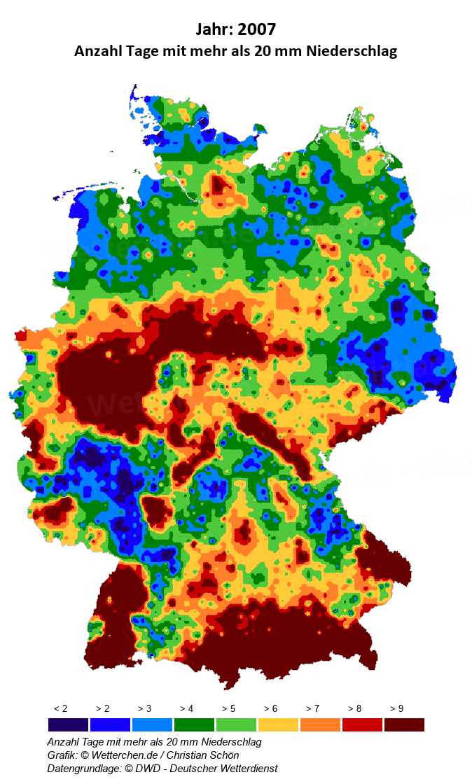2007 - Anzahl Tage mit mehr als 20 mm Niederschlag