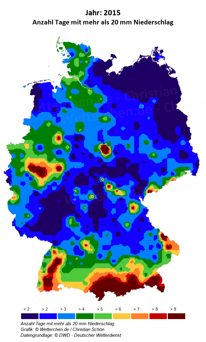 2015 - Anzahl Tage mit mehr als 20 mm Niederschlag