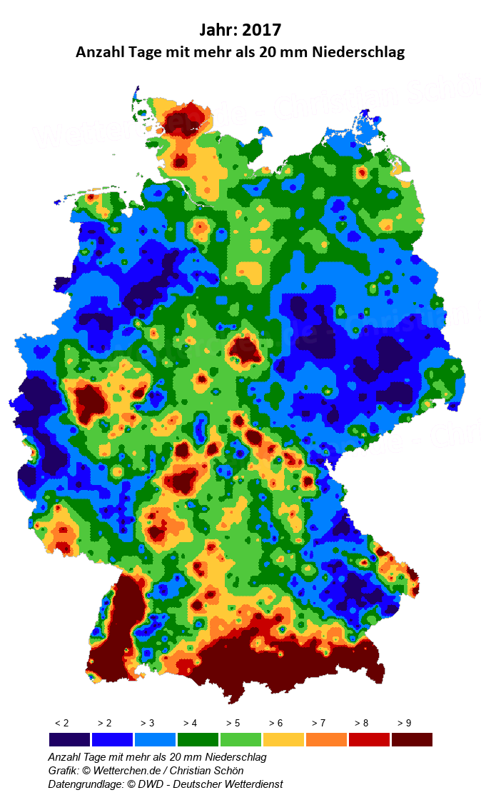 2017 - Anzahl Tage mit mehr als 20 mm Niederschlag