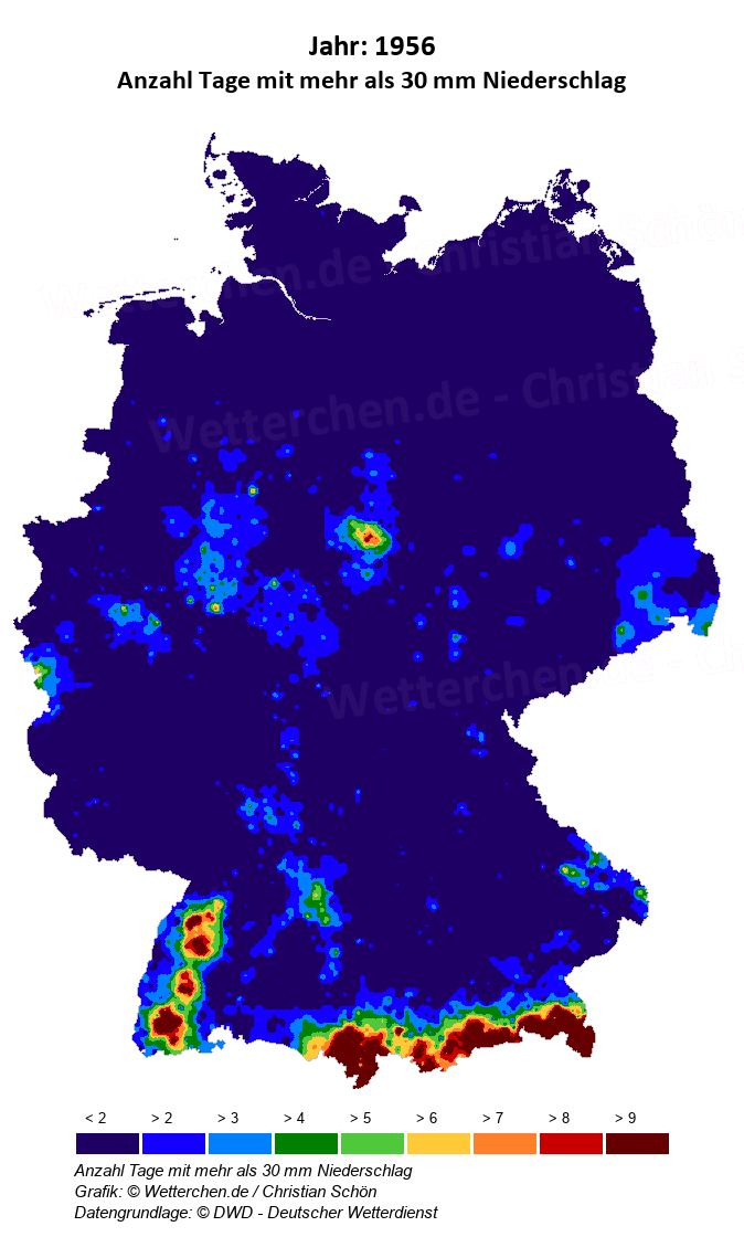 1956 - Anzahl Tage mit mehr als 30 mm Niederschlag