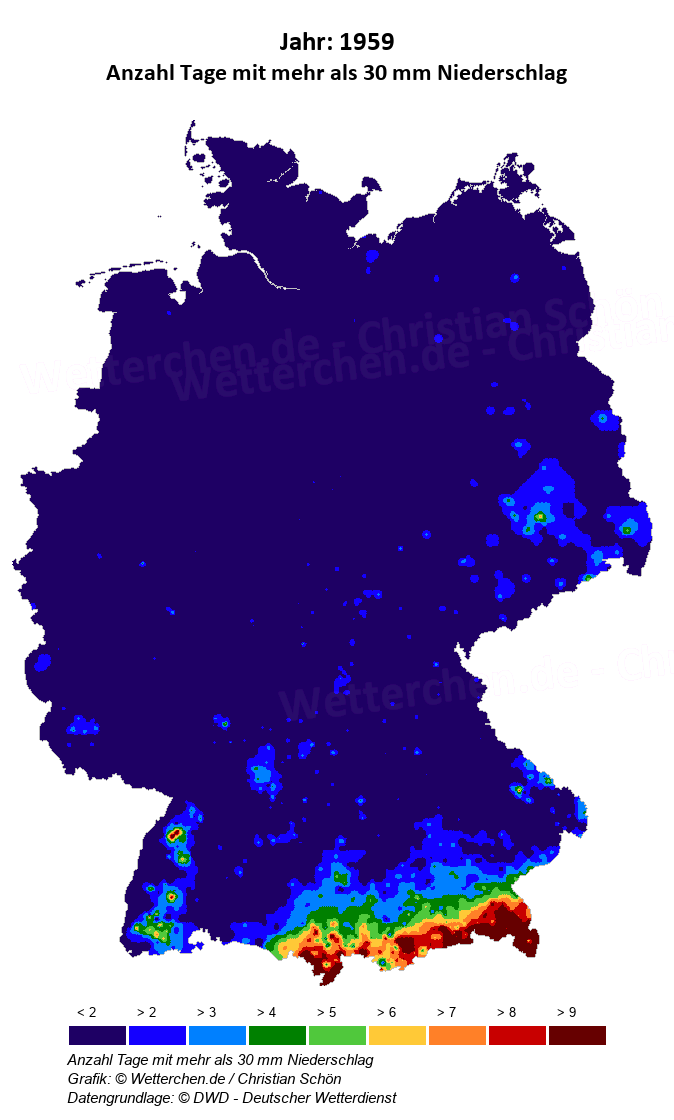 1959 - Anzahl Tage mit mehr als 30 mm Niederschlag