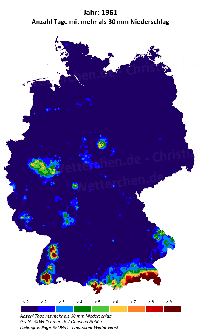 1961 - Anzahl Tage mit mehr als 30 mm Niederschlag