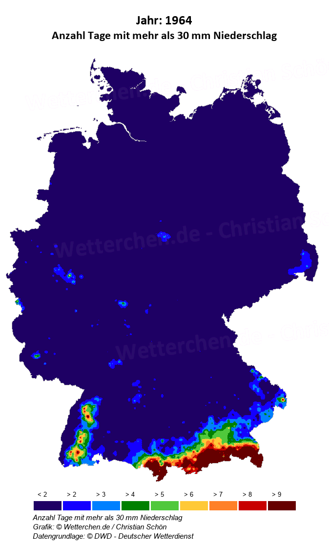 1964 - Anzahl Tage mit mehr als 30 mm Niederschlag