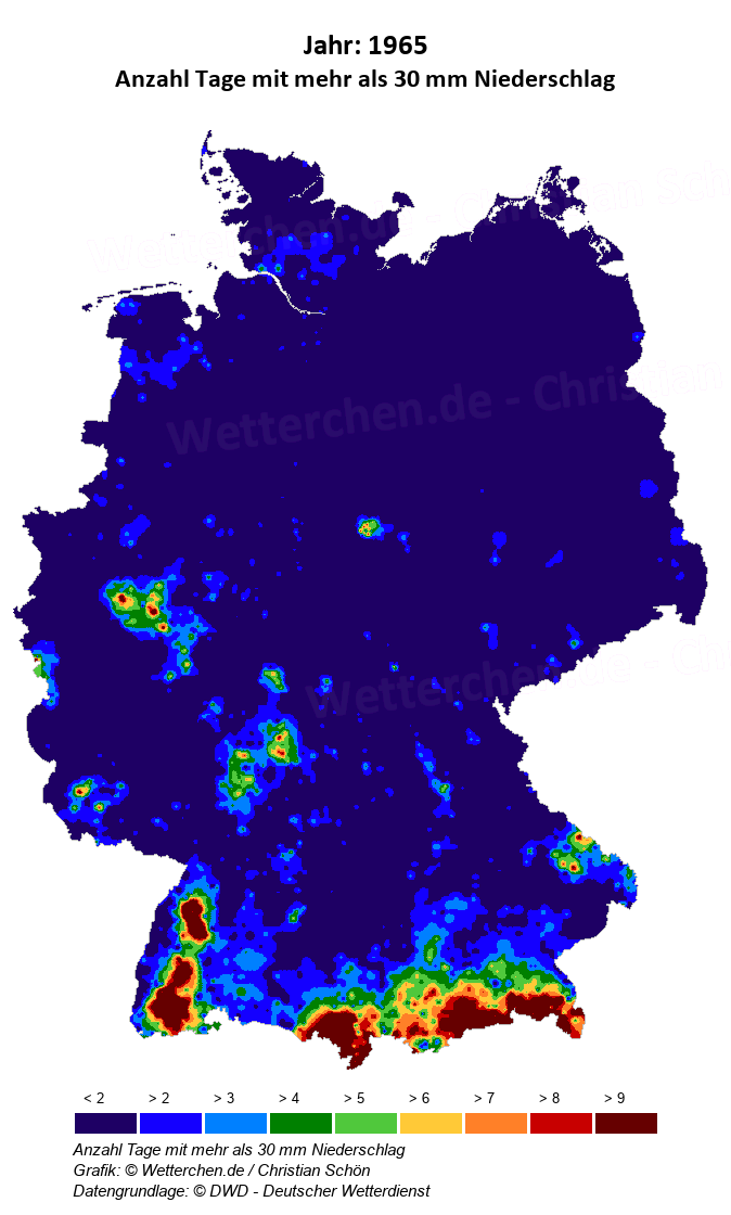 1965 - Anzahl Tage mit mehr als 30 mm Niederschlag